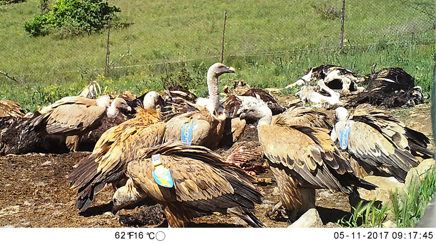 Kresna Gorge– ever since the fatal poison incident in March-April has happened, there have been no vulture breeding observed. Anyway there are 15 birds permanently present in the Gorge, as six of them, which have survived, are from the reintroduced vulture core. The other vultures are guests from neighbor Balkan colonies. Since February 2017 there are two observations of Black vulture on the feeding site.