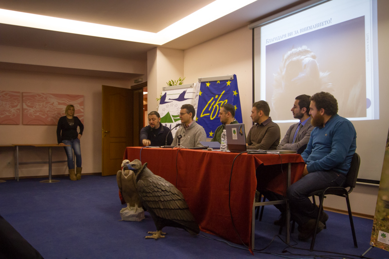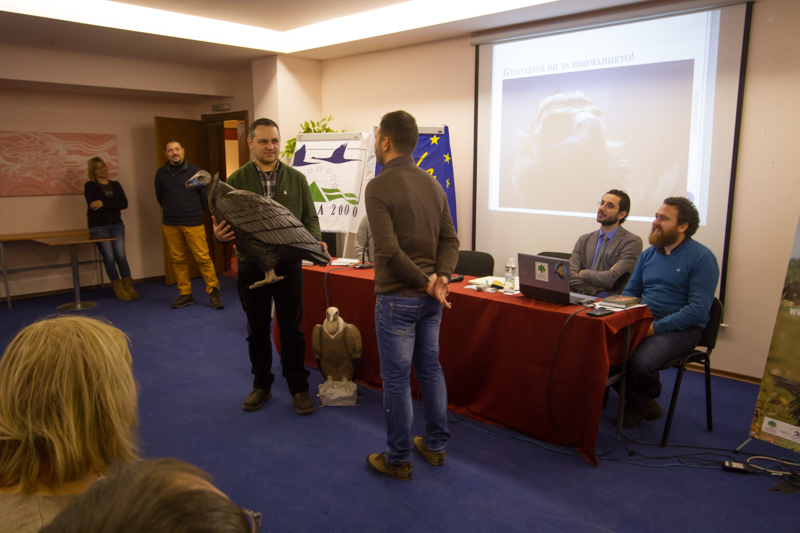 На срещата имахме възможност да представим новия и амбициозен проект Светло бъдеще за черния лешояд LIFE14 NAT/BG/649. Като част от церемонията и символ на предстоящото сътрудничество и внасяне на птици от Испания, г-н Георгиев от НСЗП прие макет на черен лешояд от г-н Йован Андевски, представител на Фондацията за опазване на лешоядите.