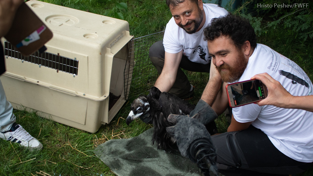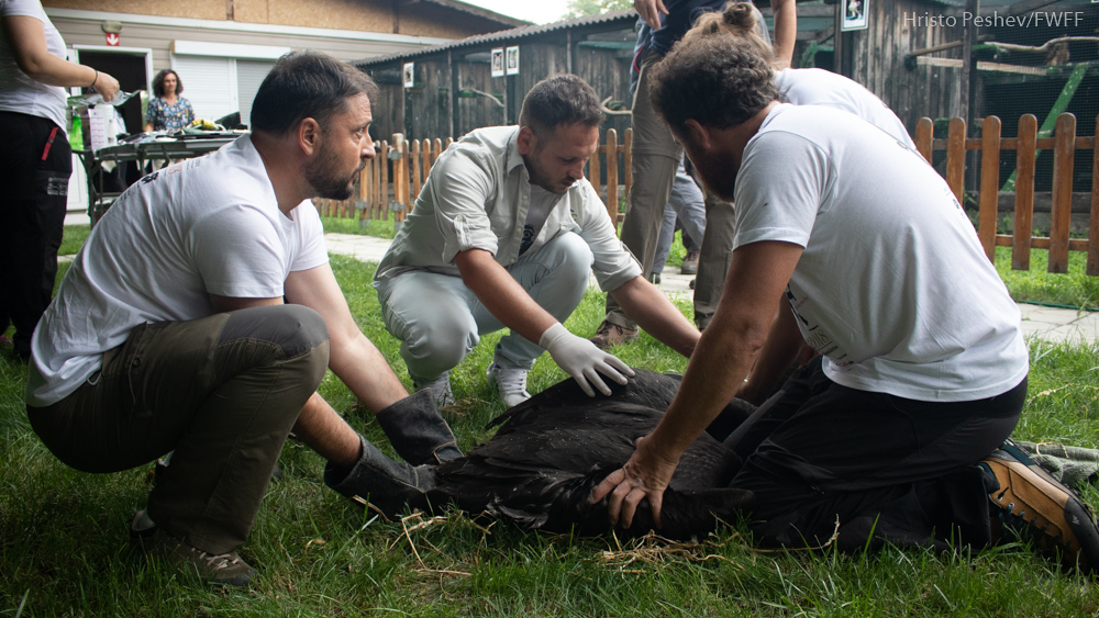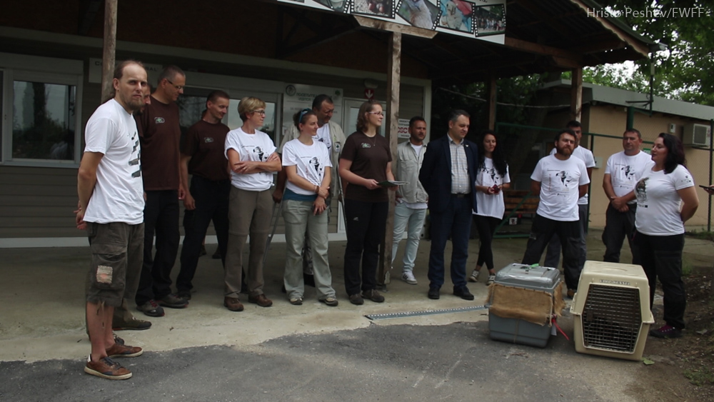 Скоро след това птиците бяха маркирани, като за целта им бяха поставени сателитни предаватели, цветни пръстени и бяха избелени част от перата им. Това ще позволява тяхното проследване във всеки един момент, както и различаването им при пряко наблюдение от разстояние. По време на специална церемония, птиците бяха символично дарени от зоопарковете на българското Министерство на околната среда и водите, което беше представен от г-н Валери Георгиев, началник отдел Биоразнообразие към Националната служба за защита на природата. След това, от своя страна, той предаде птиците на Проект „Светло бъдеще за черния лешояд“, в лицето на Елена Стоева – Ръководител на проекта.