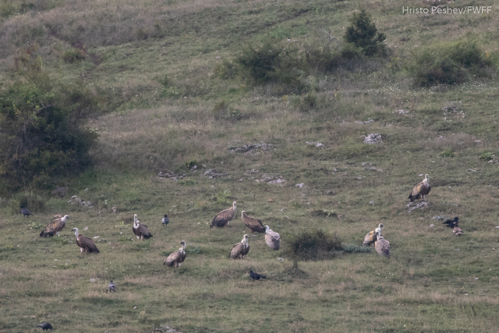 Наскоро екипът ни наблюдава почти 50 белоглави лешояда, три египетски лешояда и един див картал на площадката за подхранване в Котел, което затвърждава района като предпочитан от тези видове.