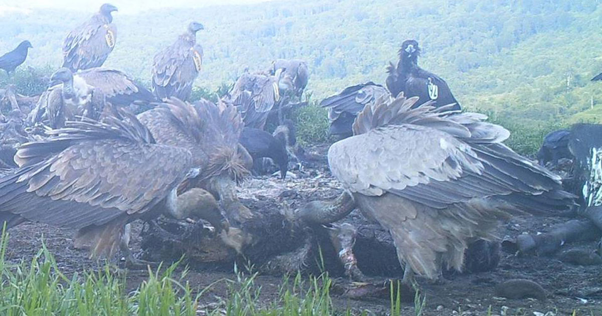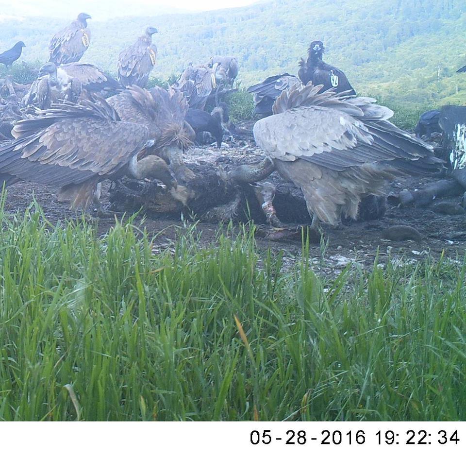 За пръви път площадката за подхранване бе посетена и от черен лешояд, маркиран с крилнамарка от Природен парк Дадя, Гърция .В момента, в котленско се наблюдават над 40 белоглави лешояди, като някои от тях са гости от Хърватия, други са маркирани в Израел и т.н. Всички те се събират и се хранят на площадките, поддържани от Фонд за дивата флора и фауна/ФДФФ и Зелени Балкани в рамките на проект „Нов живот за лешоядите” LIFE14NAT/BG/649. От средата на април в района пребивава възрастен египетски лешояд, а на 28.05.2016 се появи черен лешояд за четвърта поредна година. Гостът е маркиран с бяла крилна марка с номер 92, която нашите колеги от Националния парк “Дадя” в Гърция потвърдиха, че са сложили на птица, излюпена в района през 2015 г. Напомняме, че тази година за първи път освободените от нас белоглави лешояди успешно излюпиха малки в района на Котел. В момента колонията може да се похвали с цели 6 бебета!