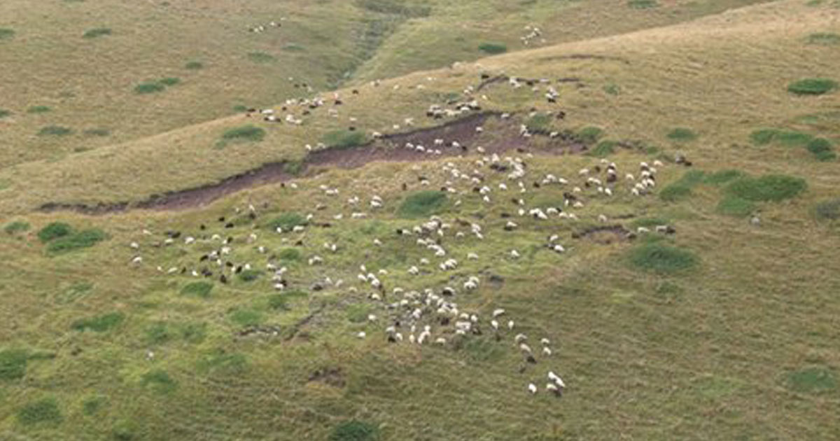 Централен Балкан, м. “Синаница”, лятото на 2009 година. Свлачището в средата на снимката се е образувало след период от почти 20 години, в които е липсвала паша на добитък в…