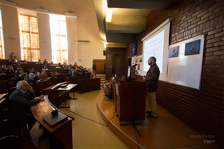 Първата презентация на гл. ас. д-р Атанас Грозданов, преподавател в СУ и член на УС на ФДФФ, представи „Ролята на Биологическия факултет на СУ в изпълнението на реинтродукционни проекти в България“. Той запозна накратко аудиторията с актуалните проекти на територията на страната ни и подчерта съществуващата връзка между науката и консервационните дейности на терен.