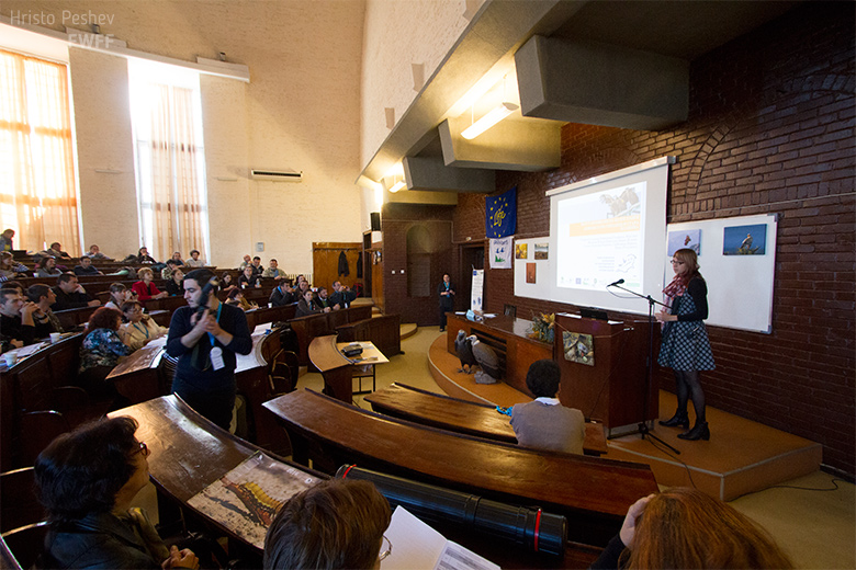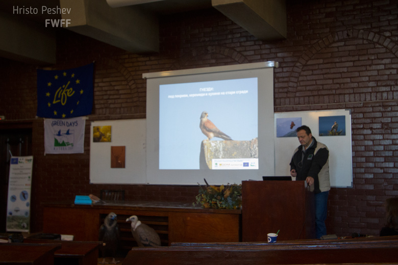 Конференцията продължи с още един изключително интересен и успешен проект за реинтродукция на изчезнал вид от България. Симеон Марин от СНЦ Зелени Балкани представи „Възстановяване на белошипата ветрушка (FALCO NAUMANNI) като гнездящ вид в България“. Пректът е финансиран от Програма Лайф+ на Европейския съюз и е съорганизатор на Конференцията.