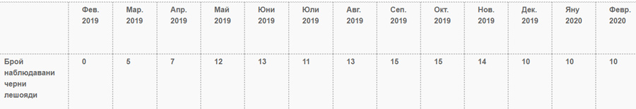 Таблица 1. Брой на наблюдаваните индивиди черни лешояди в Източна Стара планина по месеци за последната година.