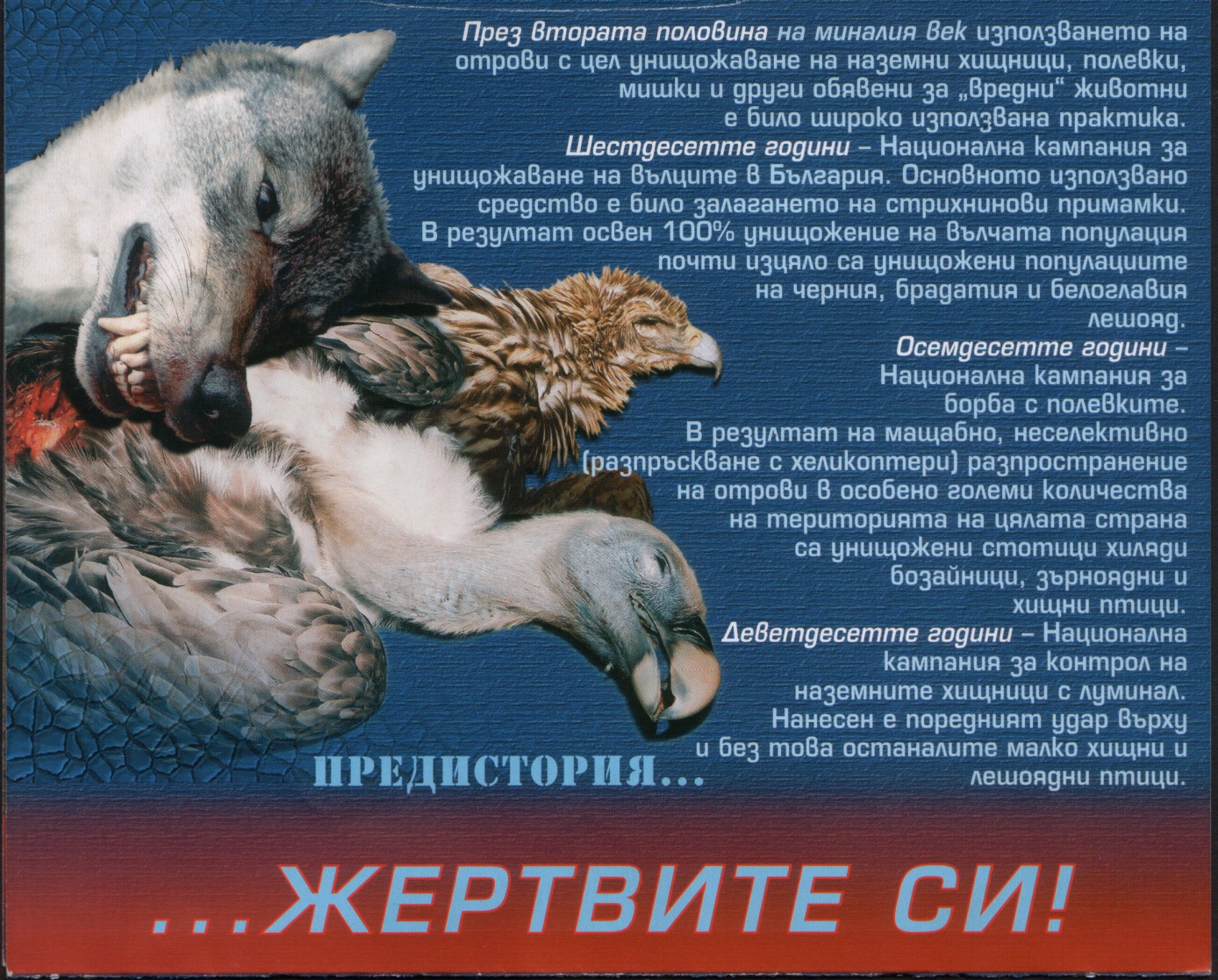 • Разпространени са хиляди брошури, постери и книжки на фермери и ловци, за да се предотвратят нови случаи на нелегално тровене